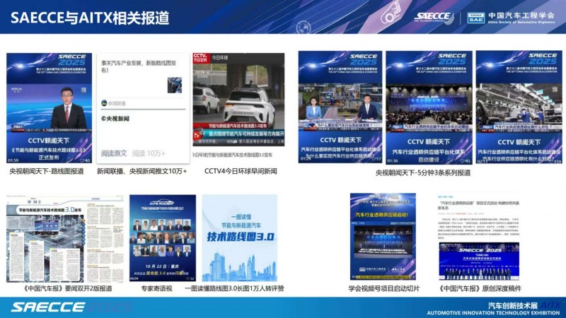 第三十二届中国汽车工程学会年会暨展览会(SAECCE 2025)在中国重庆·科学会堂成功举办。SAECCE 2025整体规模、嘉宾层级、国际参与度均创历史新高,在4天的时间里,共举行了142场会议,面向全球重磅发布《节能与新能源汽车路线图3.0》等35项行业、企业首发成果,举办86场论文海报展示活动,以及车路云一体化中外车企一致行动、SAECCE全球青年科学家系列活动、SAECCE汽车新青年成长营等3场同期活动。同期举行了25,000㎡的AITX汽车创新技术展,225家国内外企业参展,并成功举办了“工业1小时”创新发布、创新技术评选、AITX 智链速配 “汇” 供应链对接等多场配套专项活动。