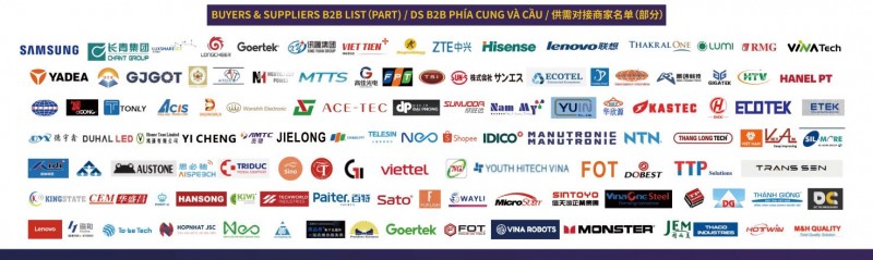 其中,参展参会的上百家知名龙头企业包括三星集团、富士康、比亚迪、中国移动、立讯、欣旺达、歌尔、美的、海信、TCL、龙旗、雅迪、公牛、国泰君安、菲沃泰、希立、创轩激光、科匯工業、思必驰、雅思电子、长青集团、高佳光电、希诺、志丰电子、联信、菲沃泰、奇利....等,还有越南龙头企业包括VIETTEL、FPT、THACO、HANEL、HPC、LUMI、AITECH、The Gioi Di Dong ...等。